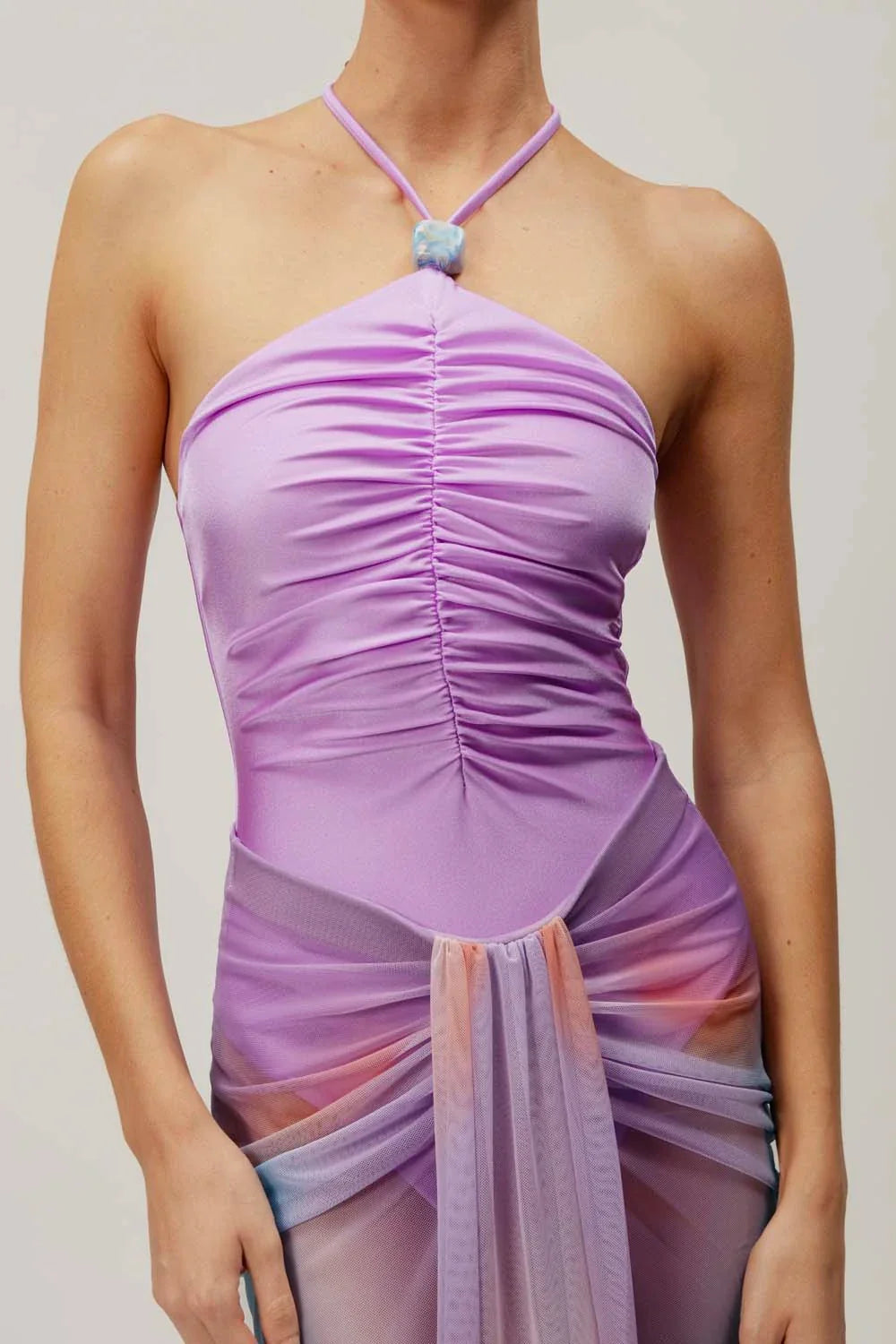 Introducing the "Anna One Piece" in Berry – a lined one-piece swimsuit with a halter neckline, ruched detailing, and embellished accents. Designed for a flattering fit and elegant look, making it a versatile addition to your swimwear collection.