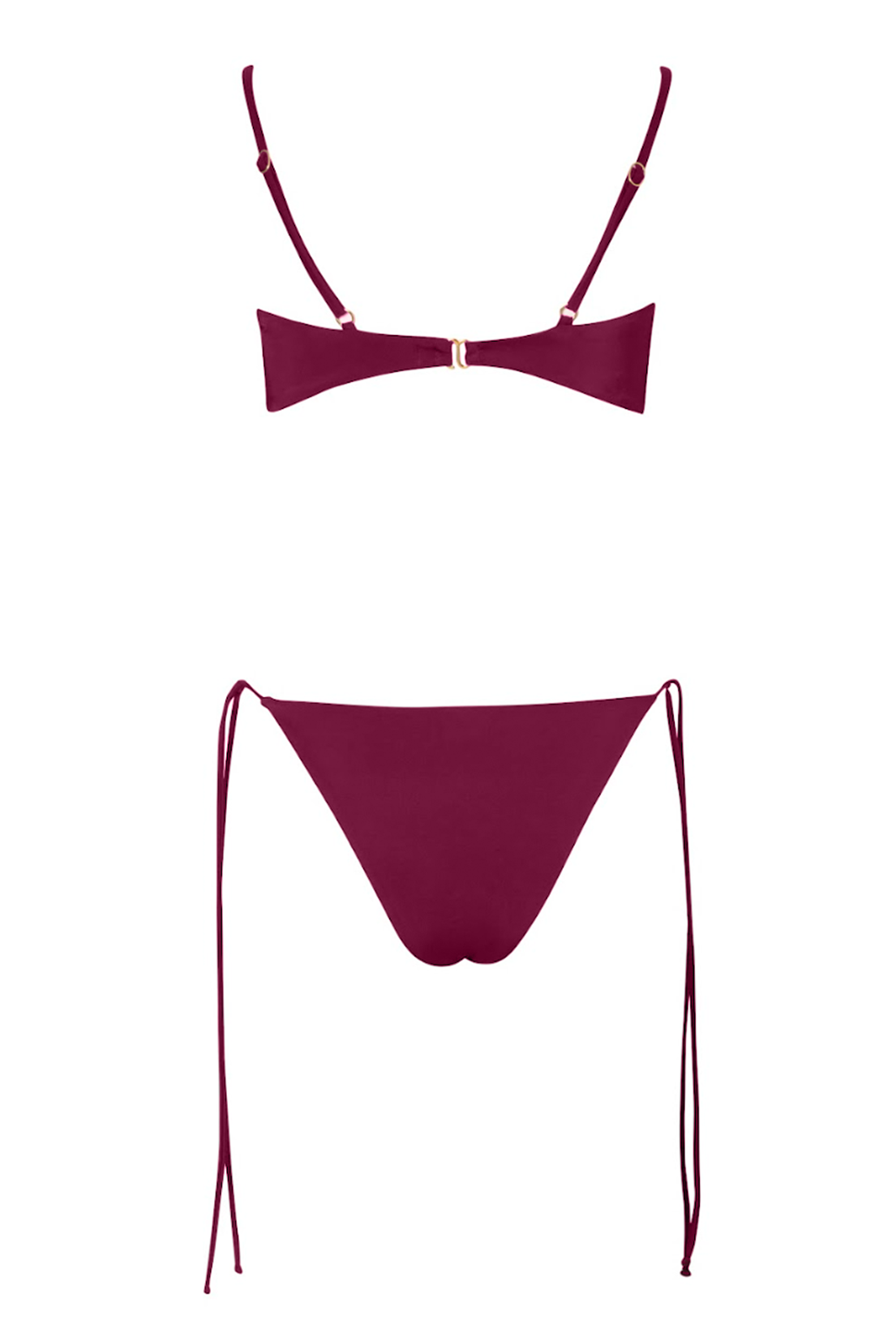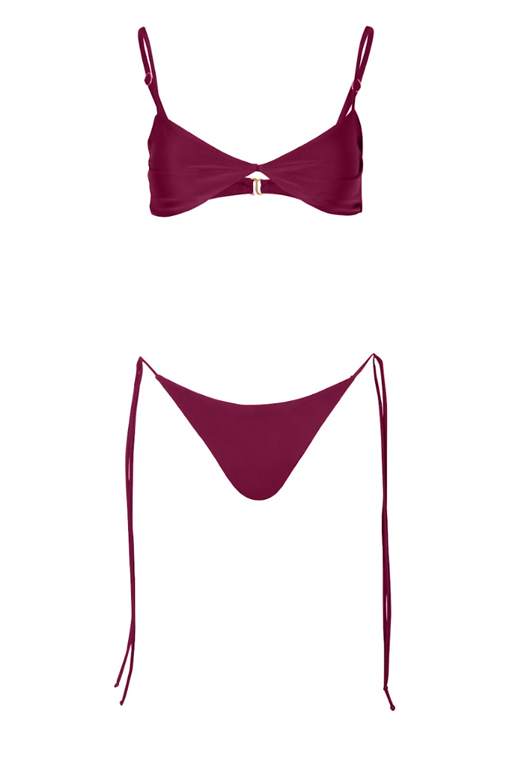Introducing the "Cabo Bottom" in Wine- Where luxury beachwear meets captivating design. Made from a lycra figure-holding fabric, this high-cut bikini bottom is the perfect pick. Pair it with the "Cabo Top" in WineÊÊand the "Cleo Mini Pareo" for the perfect beach-to-bar look.Ê