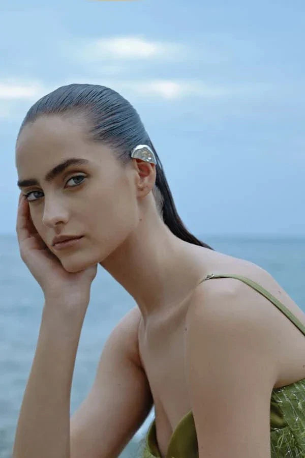 Introducing the "Larah Cuff" in Shimmer – this uniquely designed cuff features an amorphous shape, creating a modern and artistic statement. The bold design adds an eye-catching touch to any outfit, making it a perfect accessory for those who want to make a distinctive, stylish impression.
