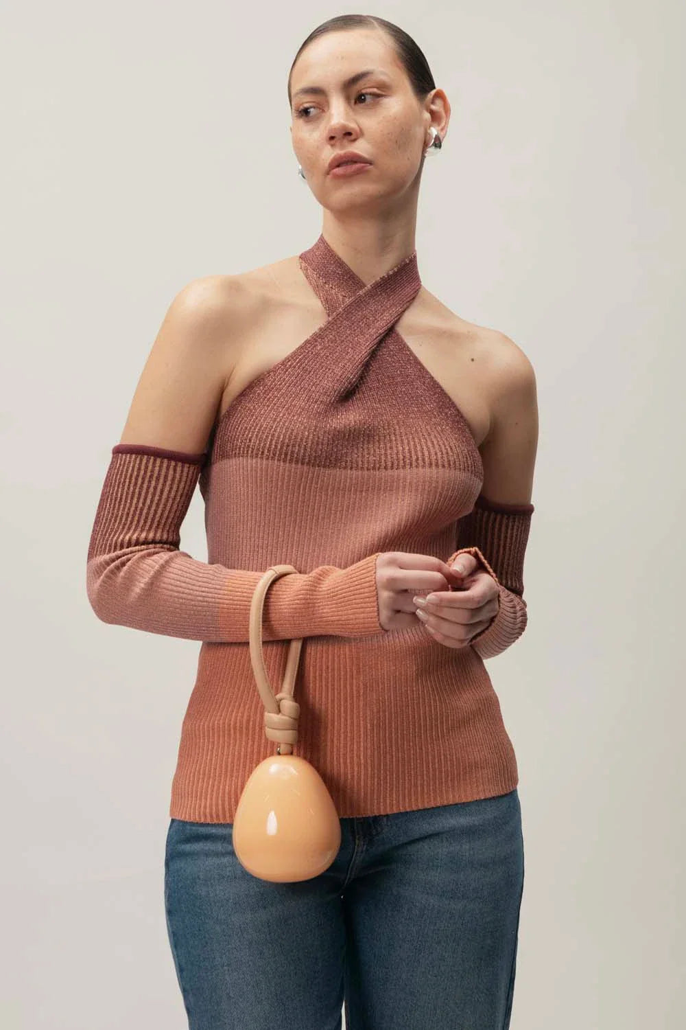 Introducing the "Lolo Bag" in Smoothie – this oval-shaped bag features a chic leather handle, offering a modern and sophisticated touch. Perfect for adding an elegant detail to your look, it’s a versatile accessory for any occasion.