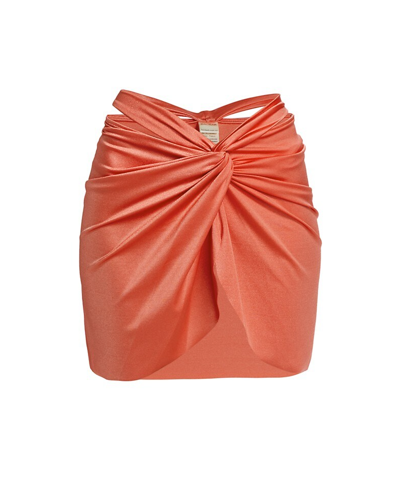Introducing the "Maple Pareo" in Terrana Ð This high-waisted mini pareo features a front knot detail, creating a playful and asymmetrical look. The front slit adds a touch of allure, making it the perfect, chic layering piece for your swimsuit, ideal for effortless elegance by the beach.