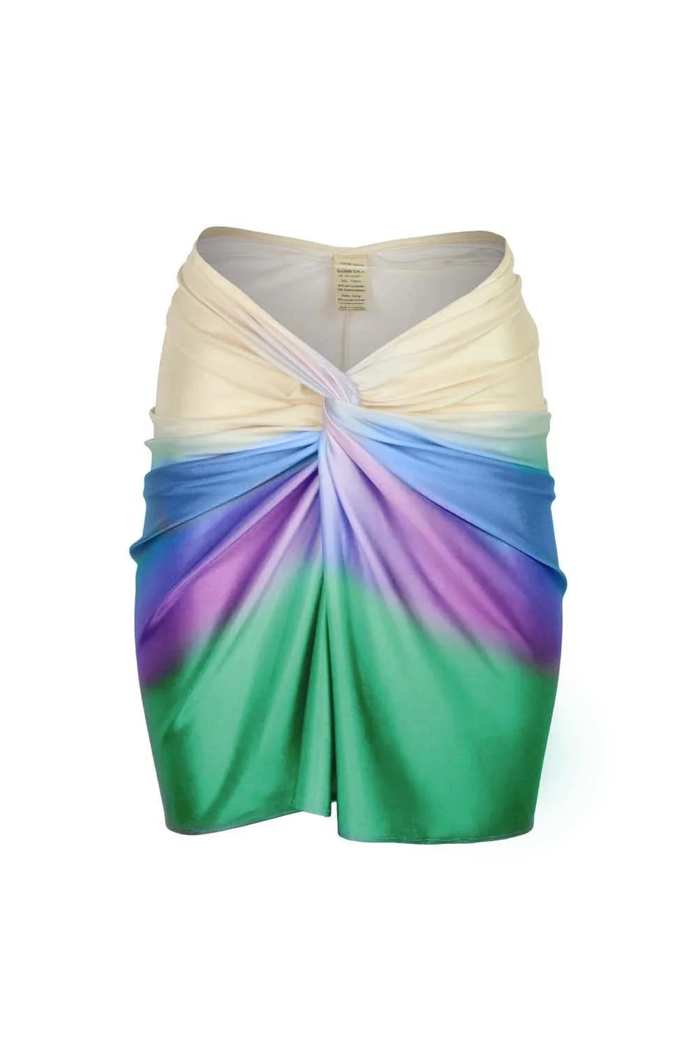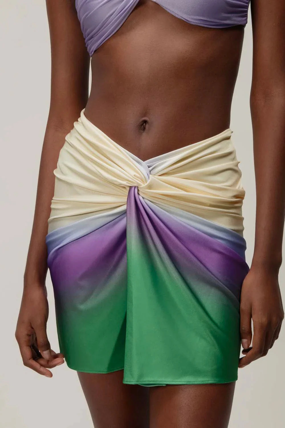 Introducing the "Maple Mini Pareo" in Chai – a mini pareo featuring a front knot detail and an elastic waistband for effortless wear. Designed with a front slit to enhance movement. Unlined for a lightweight feel.