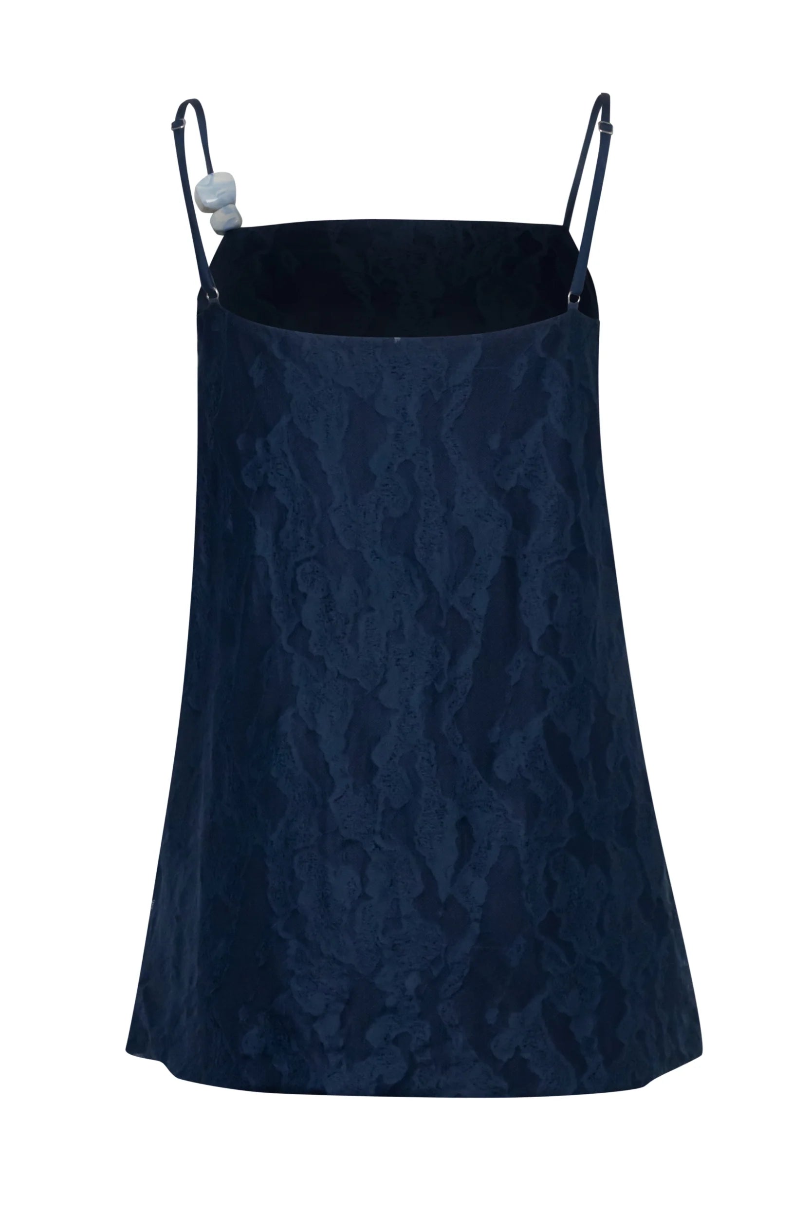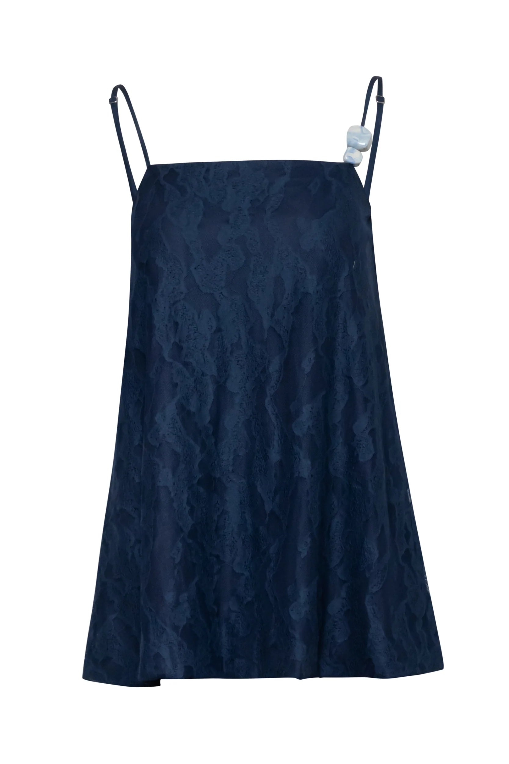 Introducing the "Porto Top" in Night Blue – a lace silhouette with a square neckline and adjustable straps. Accented with embellished detailing and fully lined for coverage. Pair it with the matching bottom for a coordinated look.