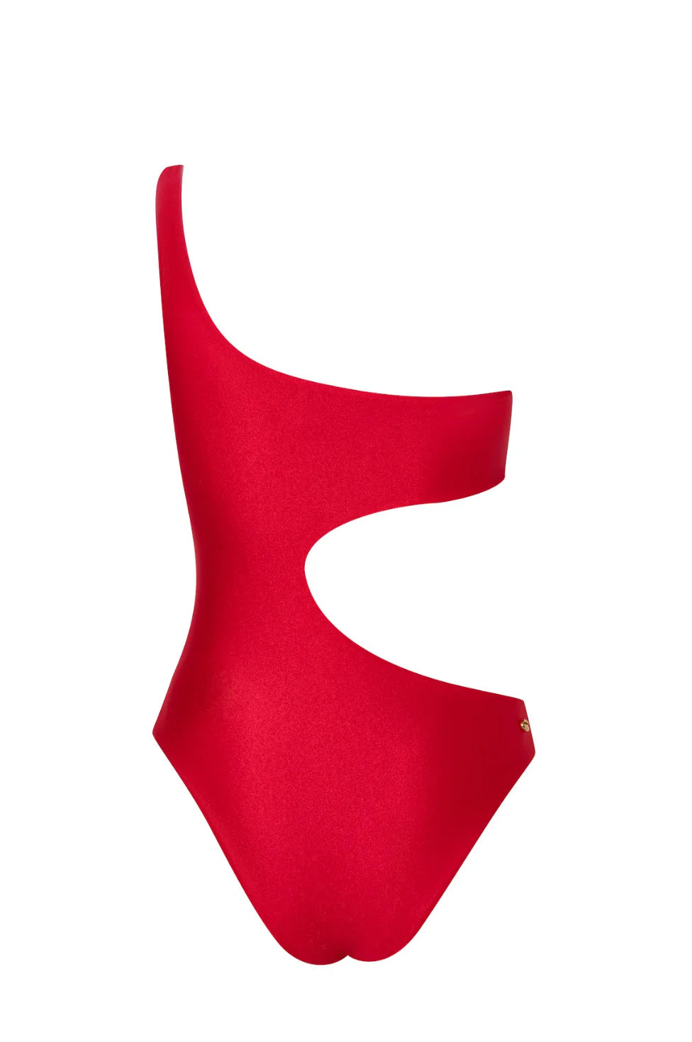 Introducing the "Tamboril One Piece" in Deep Cherry- Where swimwear meets captivating design, this one piece is a statement, featuring a one-shoulder design and carefully crafted cut-out detail that creates a unique silhouette. With it's cherry tone and a metal coated ring on the shoulder strap, it will be protagonist in your swimwear collection.